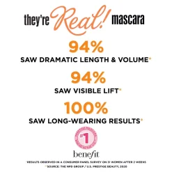 For super curl and length, apply Roller Lash first to curl and lift your lashes. Then layer They’re Real! Lengthening Mascara on top.