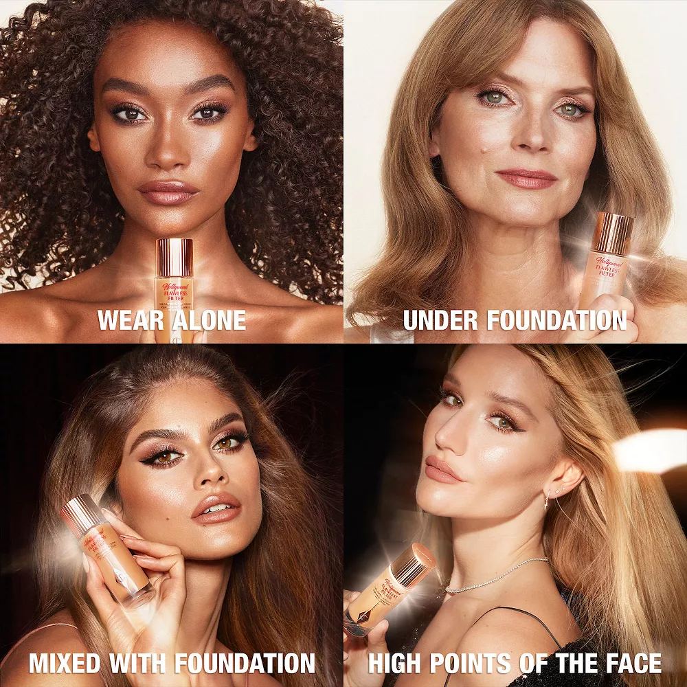 What else you need to know: Inspired by social media filters, Charlotte created this to be a confidence glow filter. It can be used as a tinted primer, under foundation, mixed with foundation, or as a highlighter on high points of the face. The light-as-air formula moisturizes for up to 24 hours while smoothing and visibly brightening skin for a radiant finish.