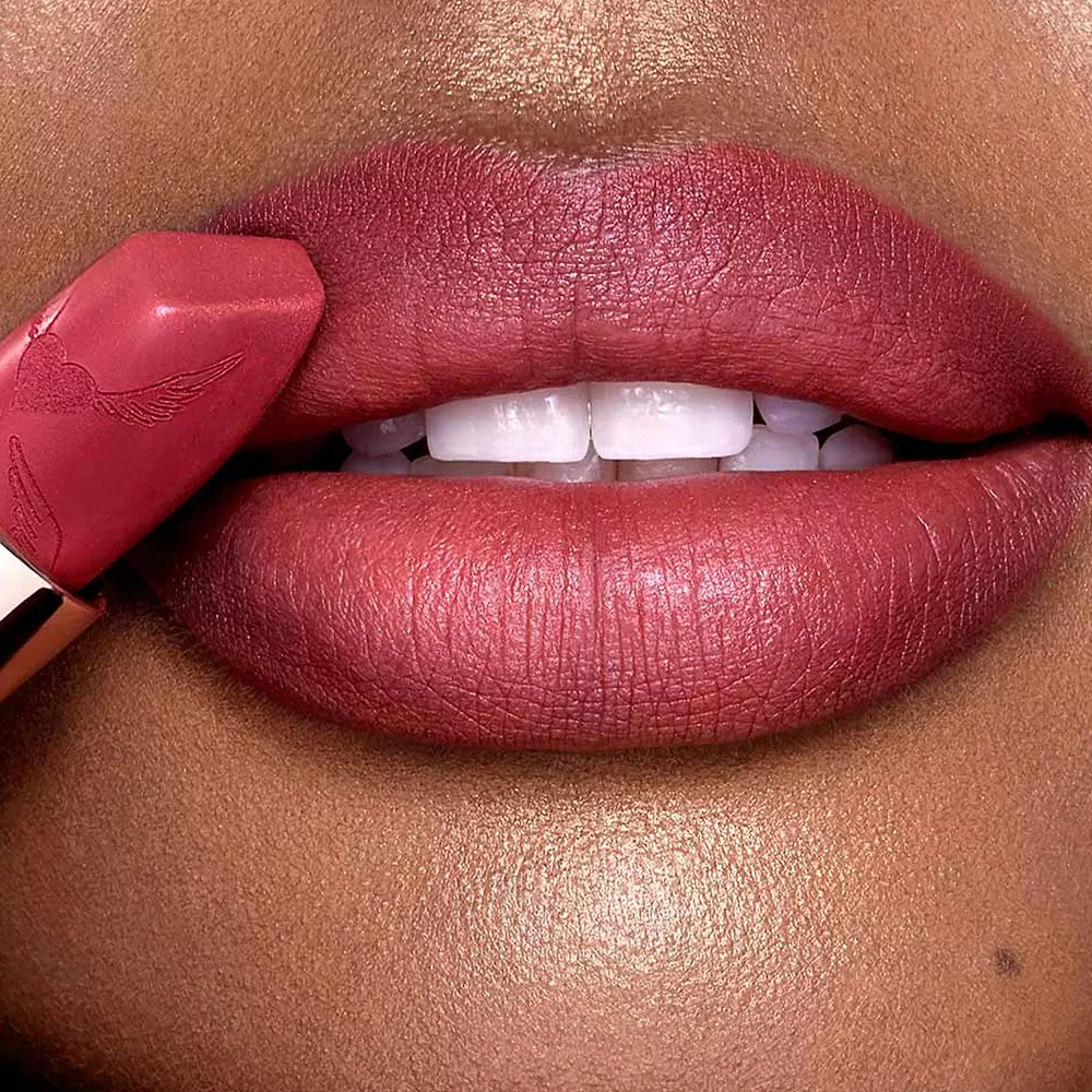Enriched with Charlotte’s secret ingredients, the K.I.S.S.I.N.G. formula protects lips from UV damage, leaving them cashmere-soft and irresistible. A special blend of waxes maintains the rich color while making this lipstick glide over the contours of your lips, with no bleeding outside the lip line. Light-diffusing pigments give lips a brilliant, multi-dimensional finish and full-bodied effect.