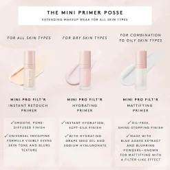 What Else You Need to Know: Mattify skin, fight shine all day, and smooth the look of pores without feeling tight or dry with the Pro Filt’r Mattifying Primer. Paired with Pro Filt’r foundation (sold separately), this oil-free primermade with Blue Agave Extract and blurring powderhelps makeup blend better, last longer, and stay fresh all day without caking.