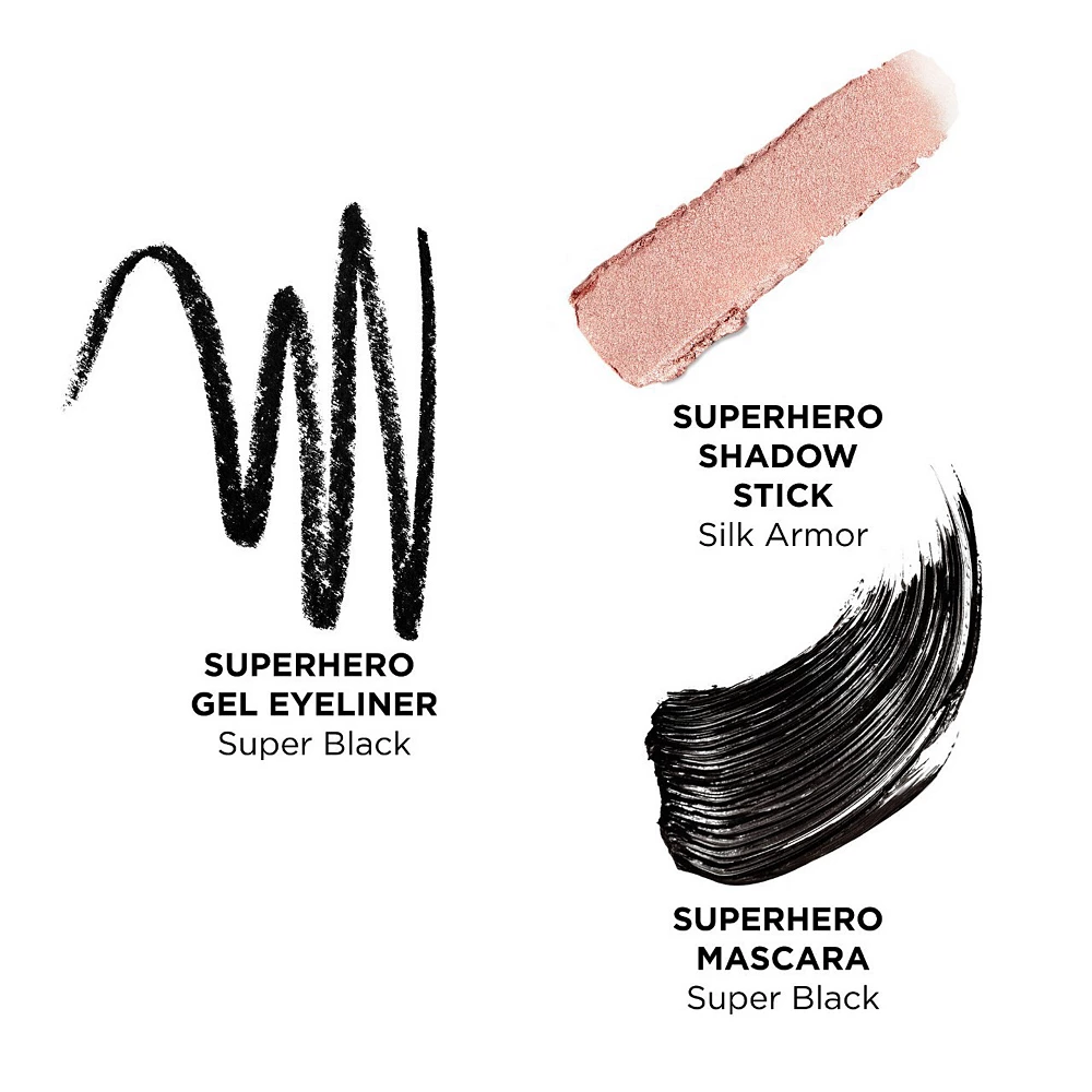 What Else You Need to Know: Transform your eyes with full sizes of your favorite eye-defining must-haves: Superhero No-Tug Waterproof Eyeshadow Stick, Superhero No-Tug Sharpenable Gel Eyeliner, and Superhero Elastic Stretch Volumizing and Lengthening Mascara. This must-have makeup set is everything you need for endless eye possibilities with buildable color and volume.