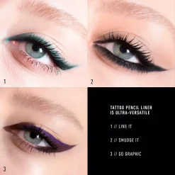 What Else You Need to Know: The Tattoo Pencil Liner sets fast to lock in place on your lids and in your waterline. This high-pigment pencil eyeliner is easy to use and versatile, so you can line it, smudge it, or go graphic.