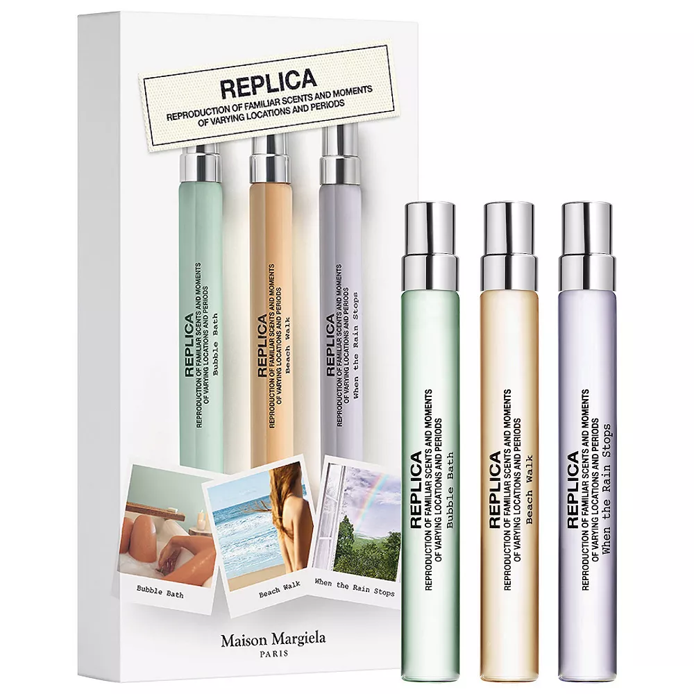Set Description: Discover scents inspired by precious moments of the past with three of Maison Margiela’s bestselling fragrances: Bubble Bath, Beach Walk, and When the Rain Stops.