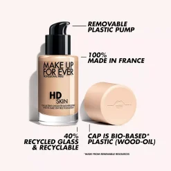 What Else You Need to Know: The new-and-improved version of Ultra HD Foundation is powered by technology that enhances performance and undetectability, for skin that looks like skin under any light. Comfortable and easy to apply, this medium-to-full coverage foundation flexes with skin for no caking or settling into lines. HD Skin is non-comedogenic, waterproof, sweatproof, and comes in more sustainable* packaging.