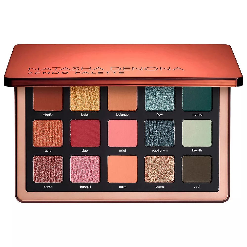 – 15 x 0.65 oz/ 19.25 g eyeshadows in Aura 379DC (medium golden orange red), Luster 375M (bronze gold), Sense 384M (pink copper), Equilibrium 382M (medium dark silver teal), Tranquil 385M (light warm rose), Calm 386CP (pastel peach), Mindful 374CP (medium cinnamon), Breath 383CP (pastel mint), Mantra 378CP (medium greenish teal), Balance 376CM (light medium caramel) , Zeal 388CM (dark dusty army green), Relief 381CP (light medium pink coral), Vigor 380CM (medium muted red coral), Yama 387DC (light peach bronze with green reflects), Flow 377M (medium silver blue teal)