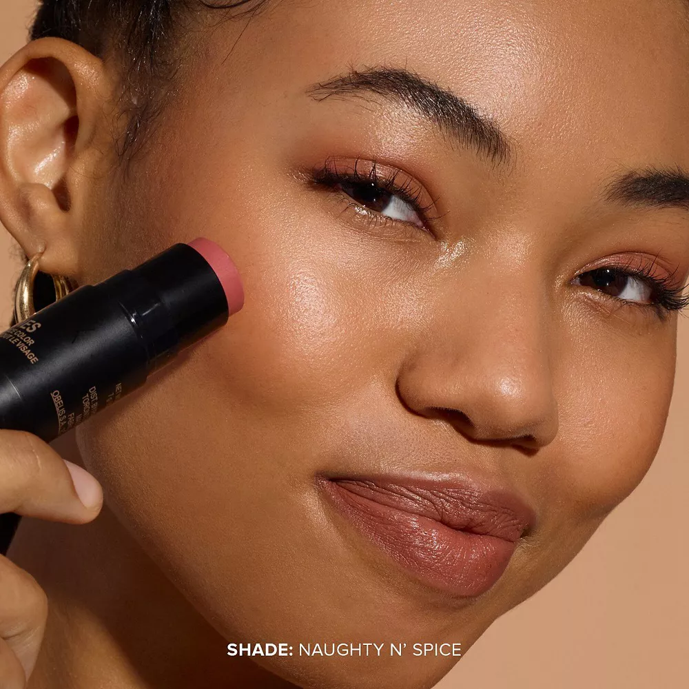 Hot off the runway, and paired with high fashion or bohemian chic looks, All Over Face Color is multitasking and dual-ended with soft color balm on one side and a blending brush on the other end for easy application that will not feather. Just draw on this weather-resistant, non-drying stick directly onto the skin, dabbing softly with fingers, or you can stipple on nude color with the included brush. You delivers custom, all-over face color that leaves your skin with a soft matte or dewy, lightweight, and elegant finish.