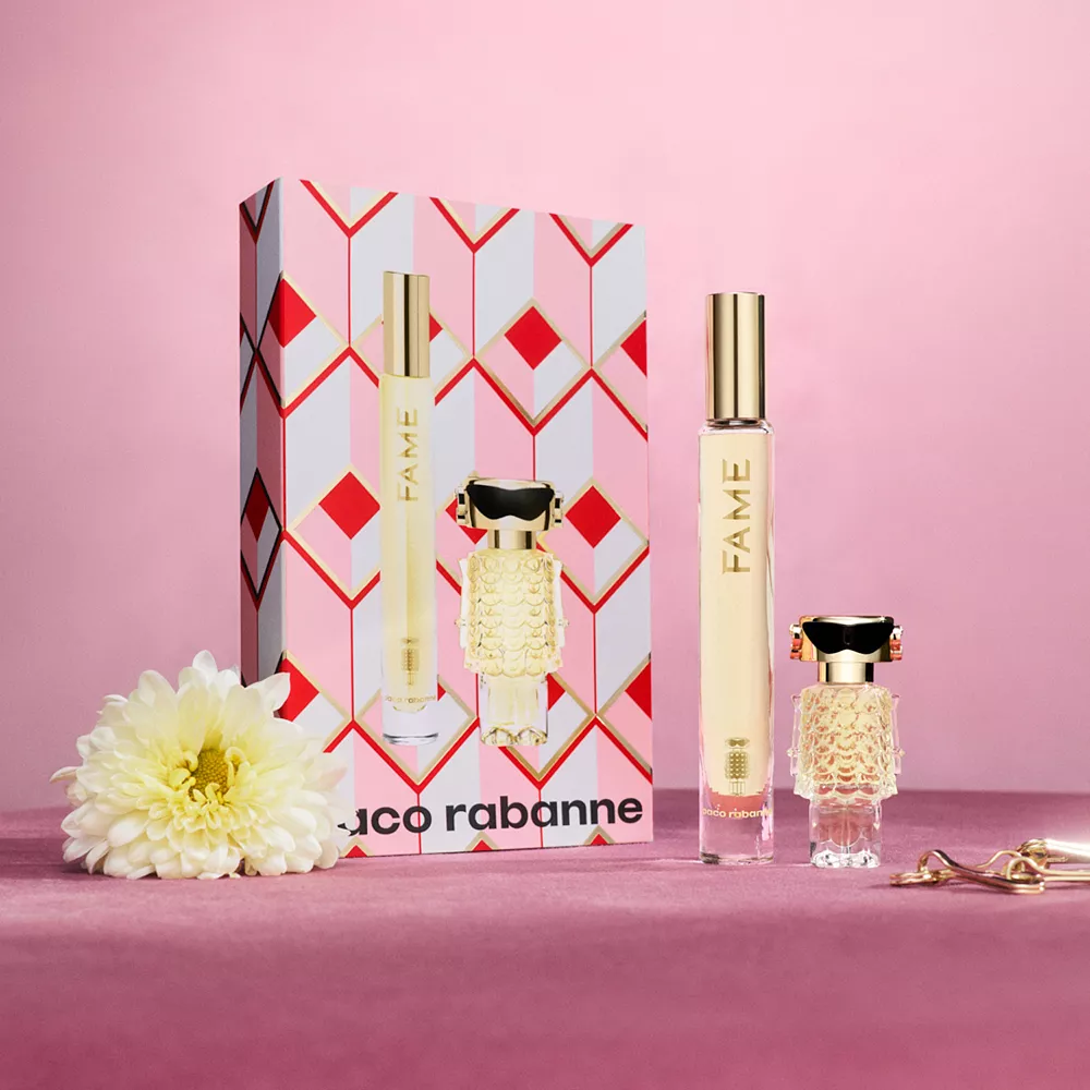 Set Description: Discover Fame, the coveted feminine fragrance by Paco Rabanne. The quintessence of avant-garde luxury, it blends exceptionally pure jasmine, succulent mango, and addictively sensual, creamy incense.