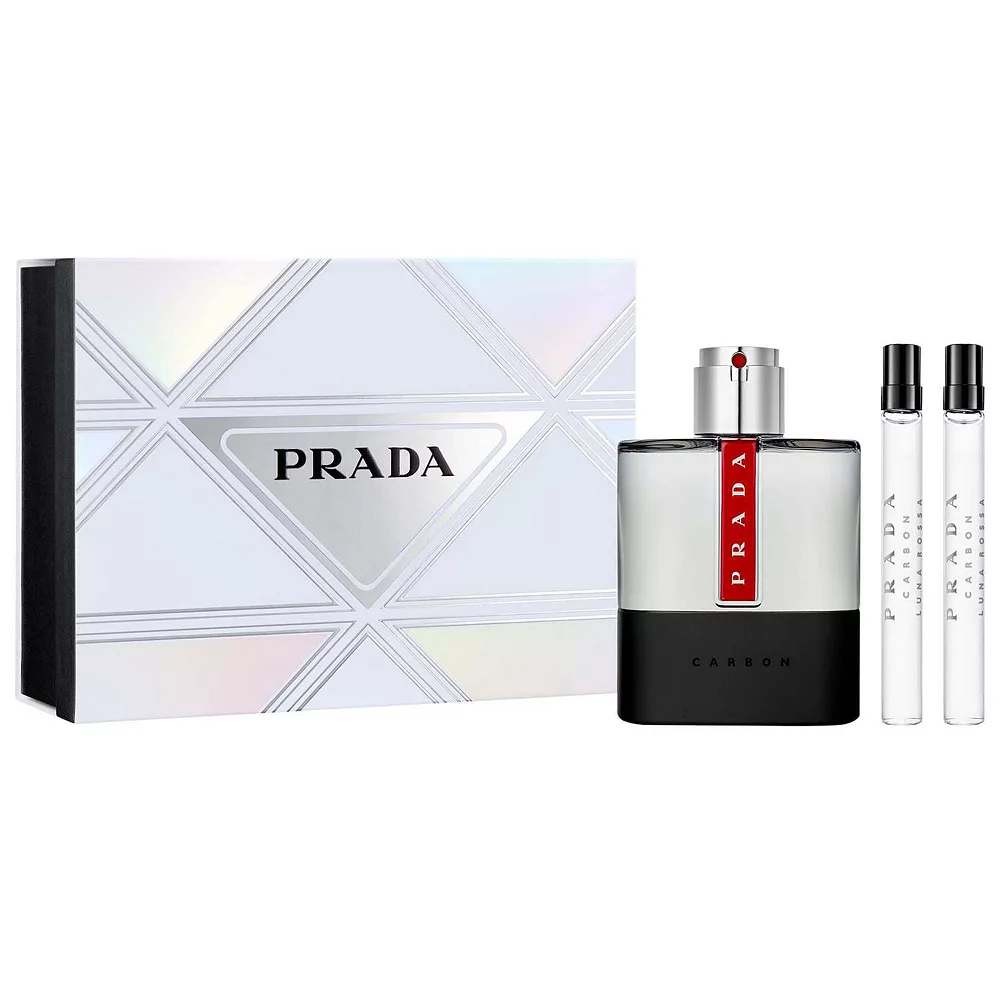 Set Description: This gift set includes Luna Rossa Carbon Eau de Toilette in a full-size bottle and two travel-spray bottles. The addictive men’s cologne blends fresh lavender, bright green floral geranium, and the dry amber of ambroxan.