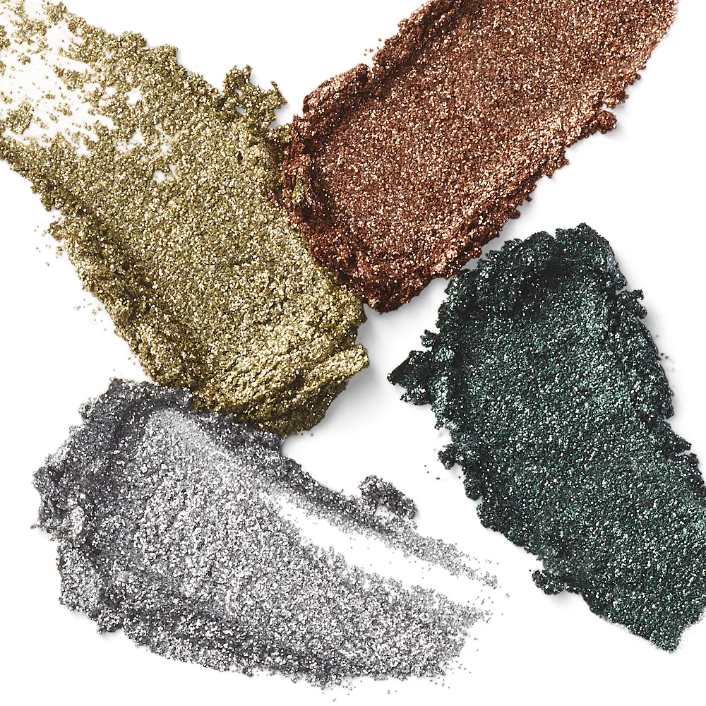 – 4 x 0.03 oz/ 0.9 g Glitter Eyeshadows in Gold, Silver, Bronze, Emerald