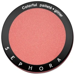 A powder blush with matte, shimmer or glitter finish.