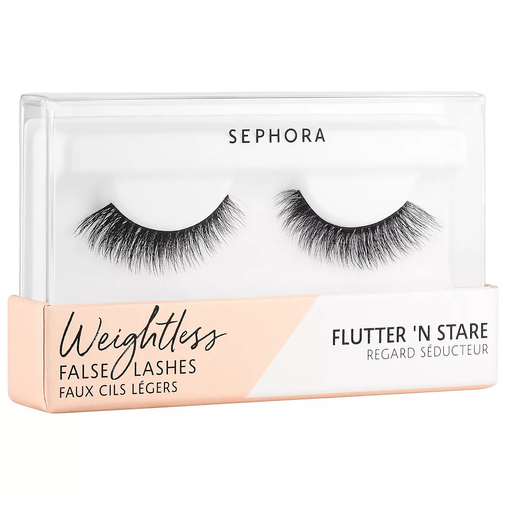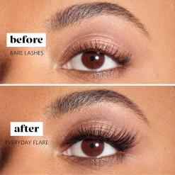 Flutter ‘n Stare (Natural): A lengthening lash with wispy, curled fibers for a soft, natural look.