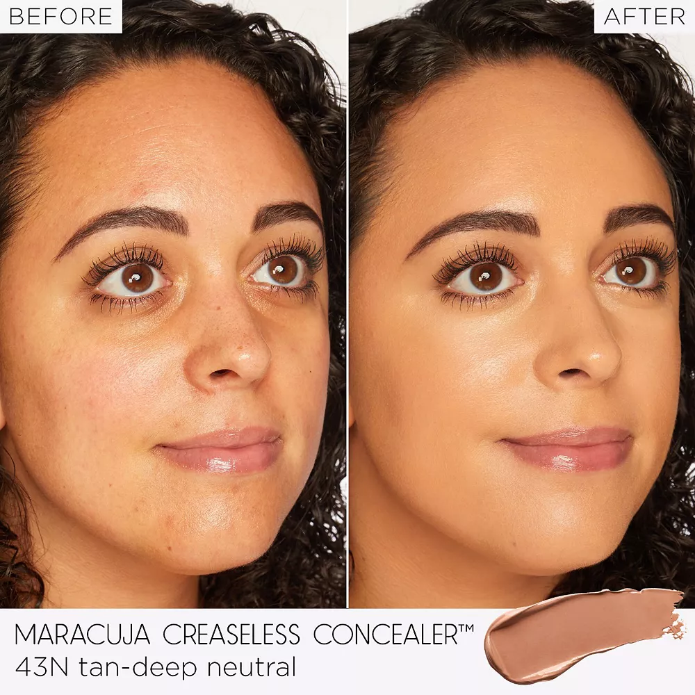 What Else You Need to Know: Creaseless Concealer completely covers dark circles, hyperpigmentation, redness, pimples, and tattoos. The waterproof formula doesn’t crease or sit in fine lines. It’s also powered by vitamin-C-rich maracuja for brighter, firmer, and smoother-looking skin. This product is dermatologist-tested, hypoallergenic, and waterproof.